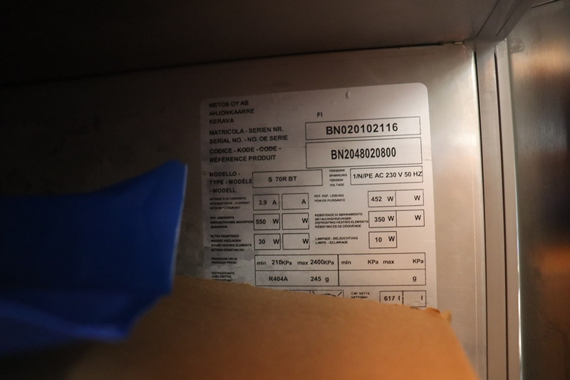 Pakastinkaappi Metos S 70R BT, kohde KE2 • Saccharum Oy konkurssipesä (Ravintola Toppa)
