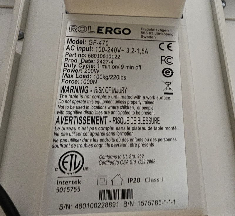 - 2 kpl rol ergo GF-470 sähköpöytiä 70 cm x 100 cm