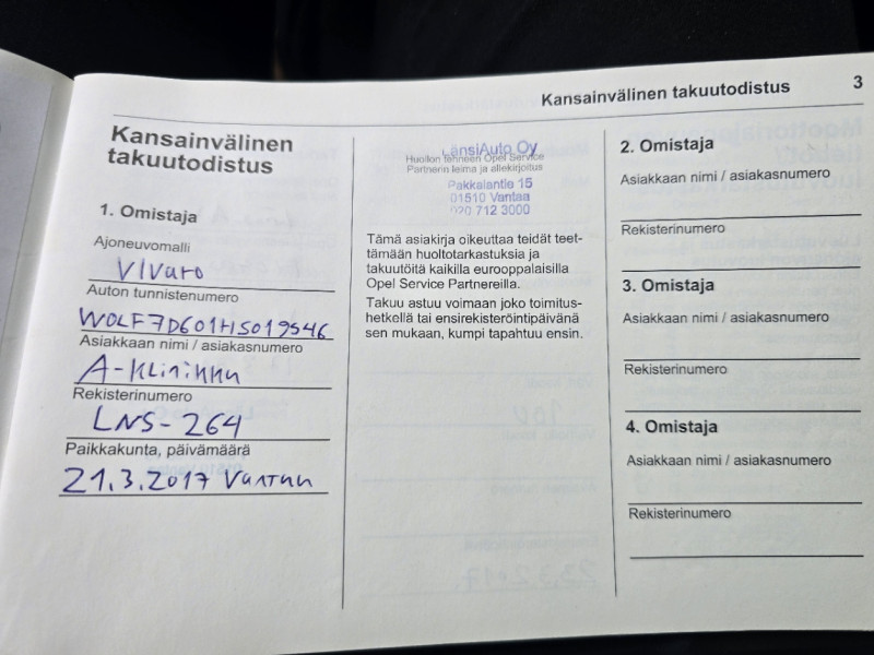 Pakettiauto Opel Vivaro-B 1.6 ''2900'' vm. 2017. Rekisteritunnus LNS-264