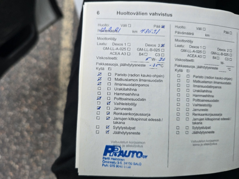 Jäänyt suoraan ajosta seisomaan. Koekäynnistetty ja hihna tuntui vinkuvan kylmänä. Huolto ja moottorihäiriövalo paloi.