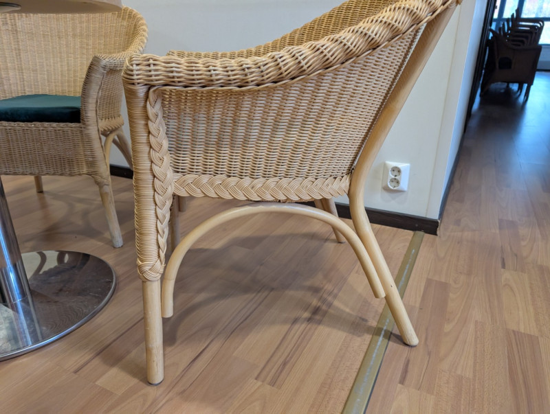 Sohva, pyöreä pöytä ja kaksi rottinkituolia | Konkurssihuutokauppa