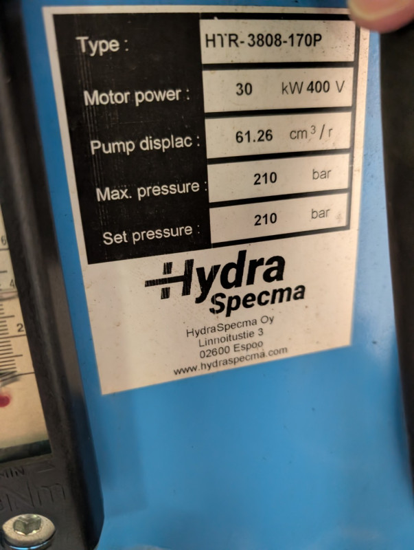 Hydra Specma HTR-3808-170P hydrauliyksikkö • Ralf Ajalin Oy konkurssipesä