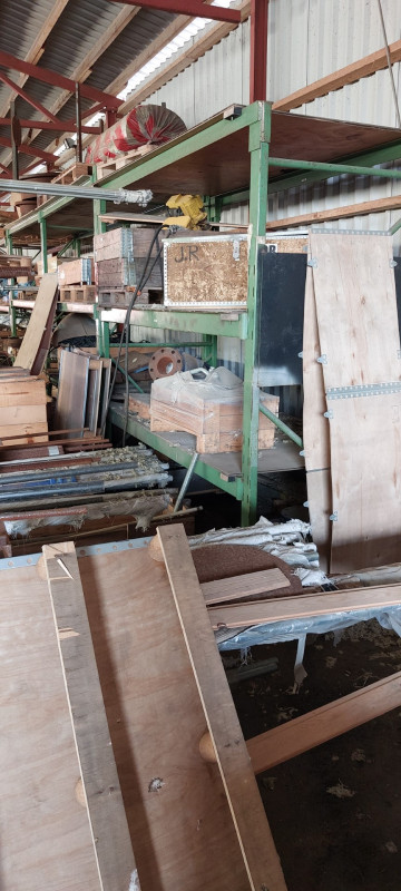 -  pieni erä puutavaraa hallin sisällä