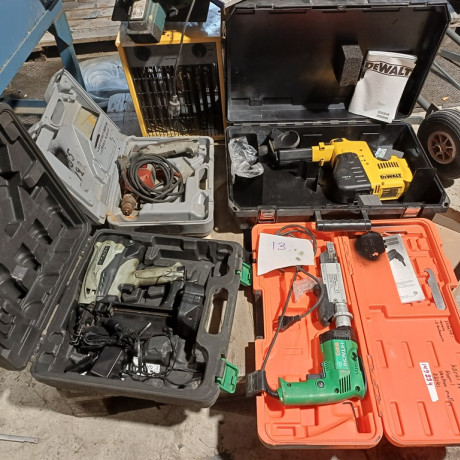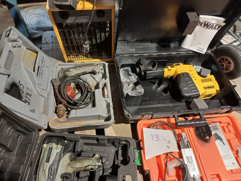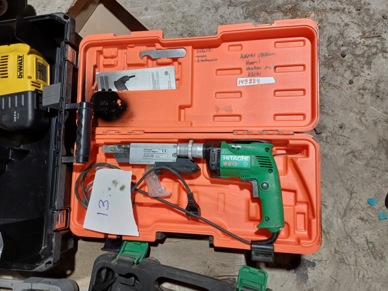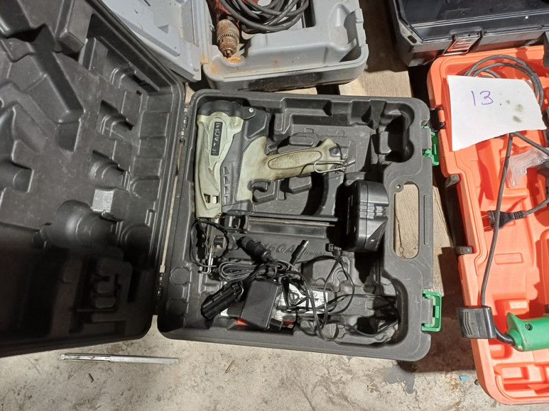 Käytettyjä työkaluja. Hitachin akkunaulain ei toimi eikä varmaa tietoa onko kaikki osat.