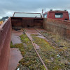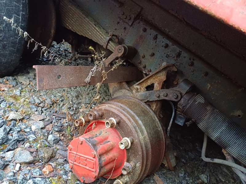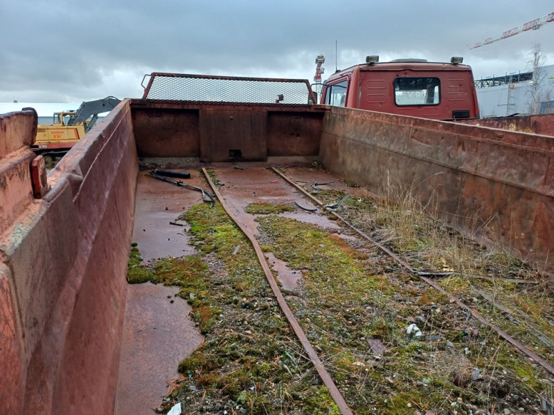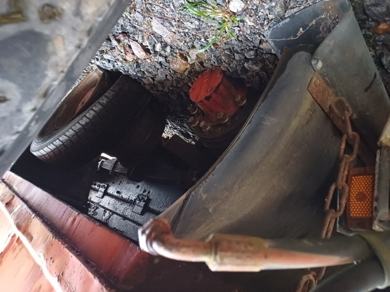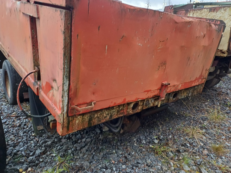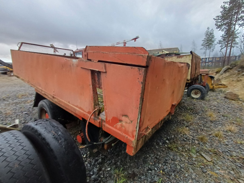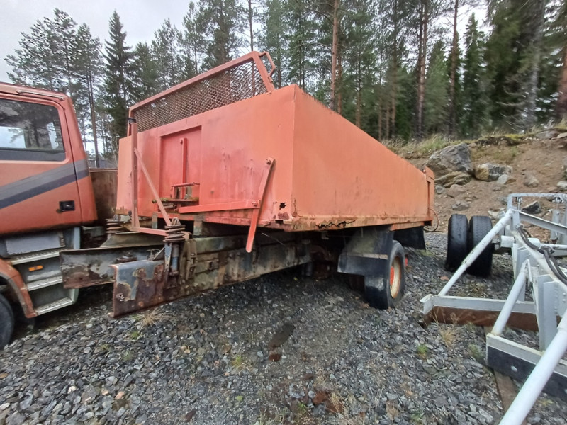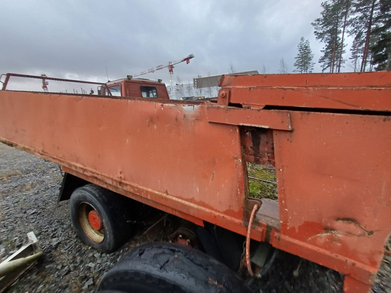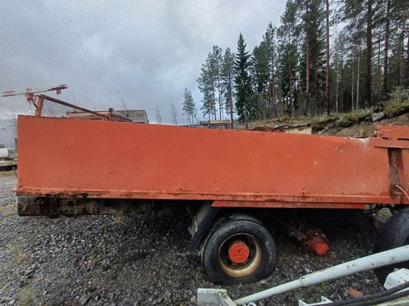 Käytetty peräkärrynaihio. Kuorma-auton runko telillä/2akselinen ja housukipillä metallisella lavalla.