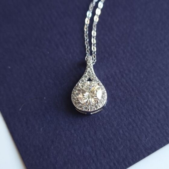 uusi 1,0 ct riipus timantti-Moissanite + ketju Silver 925,44cm,todistus,lahjarasia | Konkurssihuutokauppa