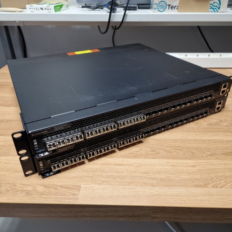 Erillistoimeksiantona myydään 2 kpl erä Lenovo RackSwitch G8124E, 24-porttinen kytkin. Laitteet on resetoitu. Nopean testin perusteella vaikuttavat ok-kuntoisilta. Mukana toimitetaan myös 24kpl Brocade 57-1000117-01 8Gb SFP+ kuitumuuntimia.